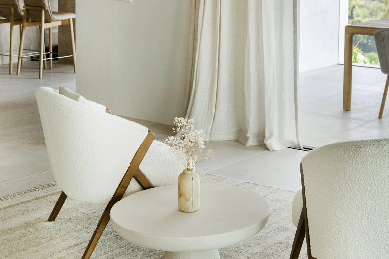 The furniture throughout Son Falco has been carefully selected to echo the home’s calm, architectural language — elegant in form, neutral in tone, and timeless in spirit.